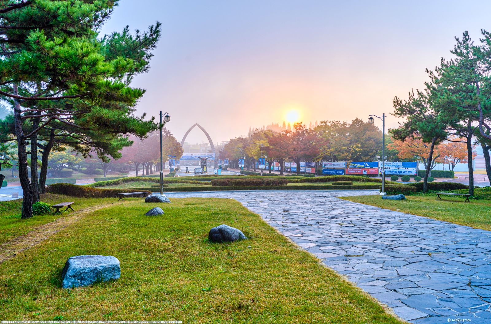 경상대학교 개척탑과 개척광장 정문주변
