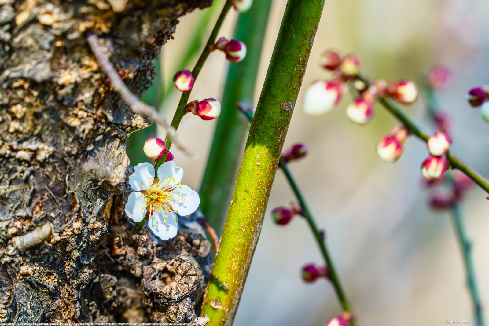 담장너머까지 가지를 뻗은 매실나무는 엄청난 숫자의 매화를 꽃피우고 벌들을 유혹한다. 얼마나 많은 매실을 열리게 할 심산인가?