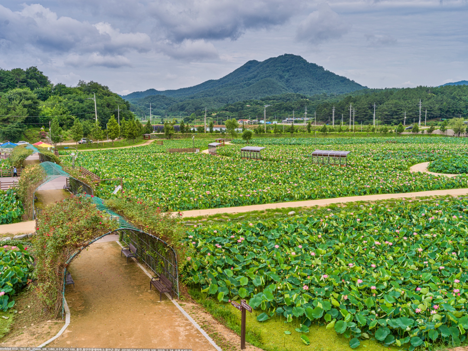 연꽃은 혼자 있어도 멋있지만, 함께 어울린 모습도 멋있다. 간이 정자와도 잘 어울린다.